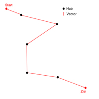 Abbildung 1 gibt dieses Ergebnis in der einfachsten möglichen Form wieder. Auffällig ist, dass hier, der Übersichtlichkeit halber, Start und Ziel angegeben sind, obwohl sich dies aus den Vektoren nicht schließen lässt.